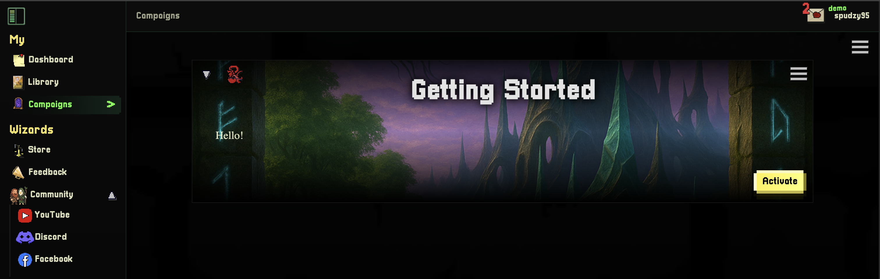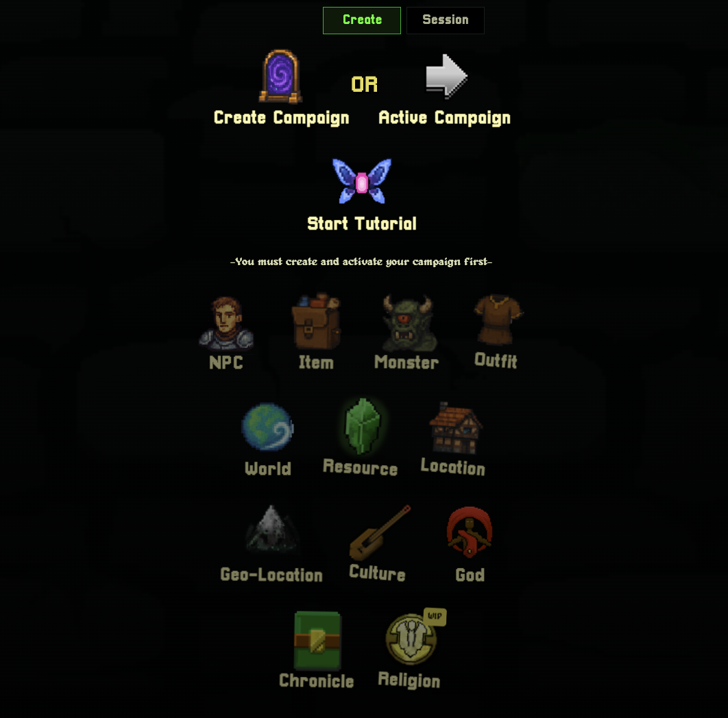 Campaigns need to be activated in order for World Wizard to known where to put your stuff. Each campaign has it's own library of Game Assets to make it easy for you to swap context on demand.
