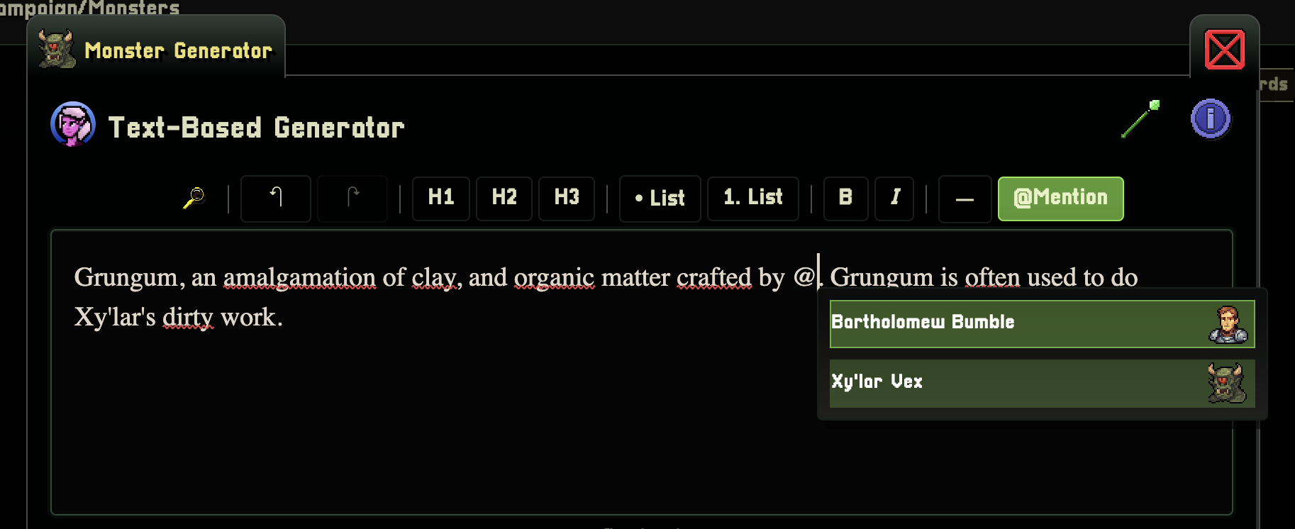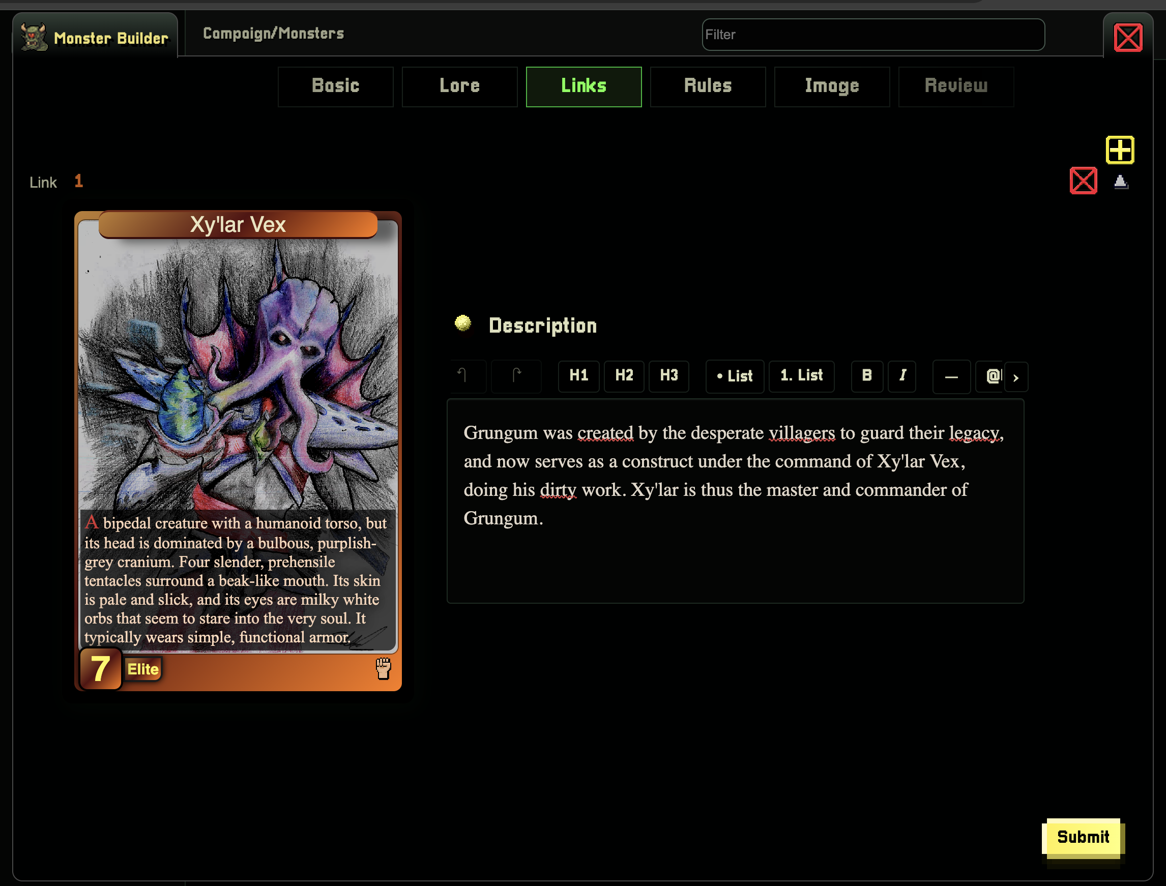 In the prompt we are specifically telling WorldWizard that this monster should be used as a sidekick / dirty worker for our big bad.