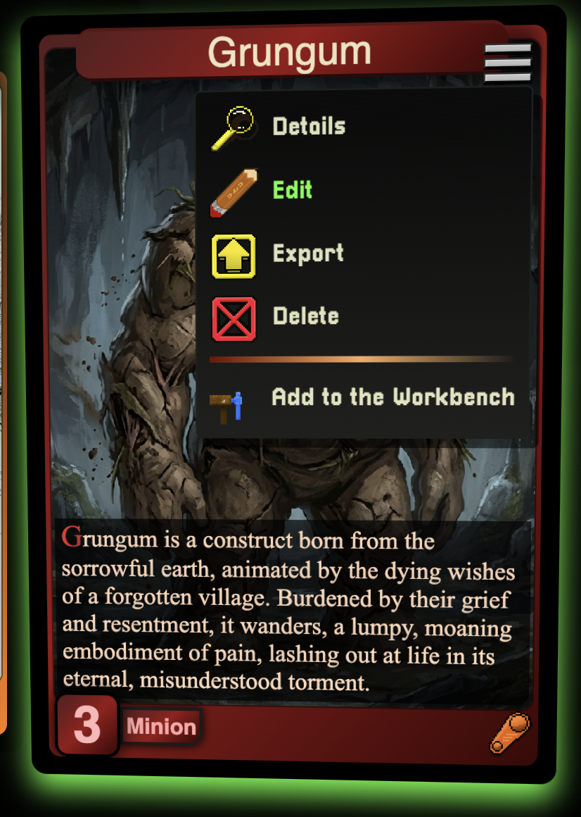 Everything that is generated in World Wizard is fully customizable, editing Game Assets is as simple as clicking the hamburger icon > Edit button.