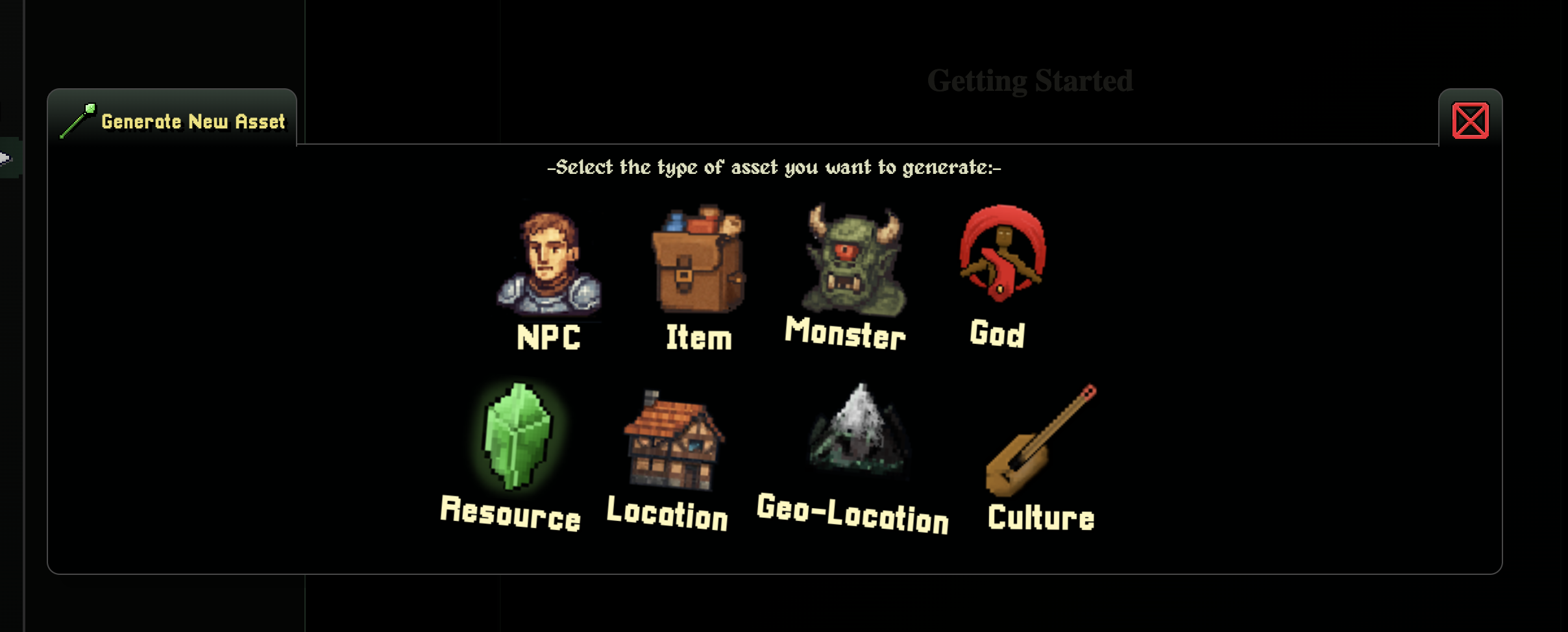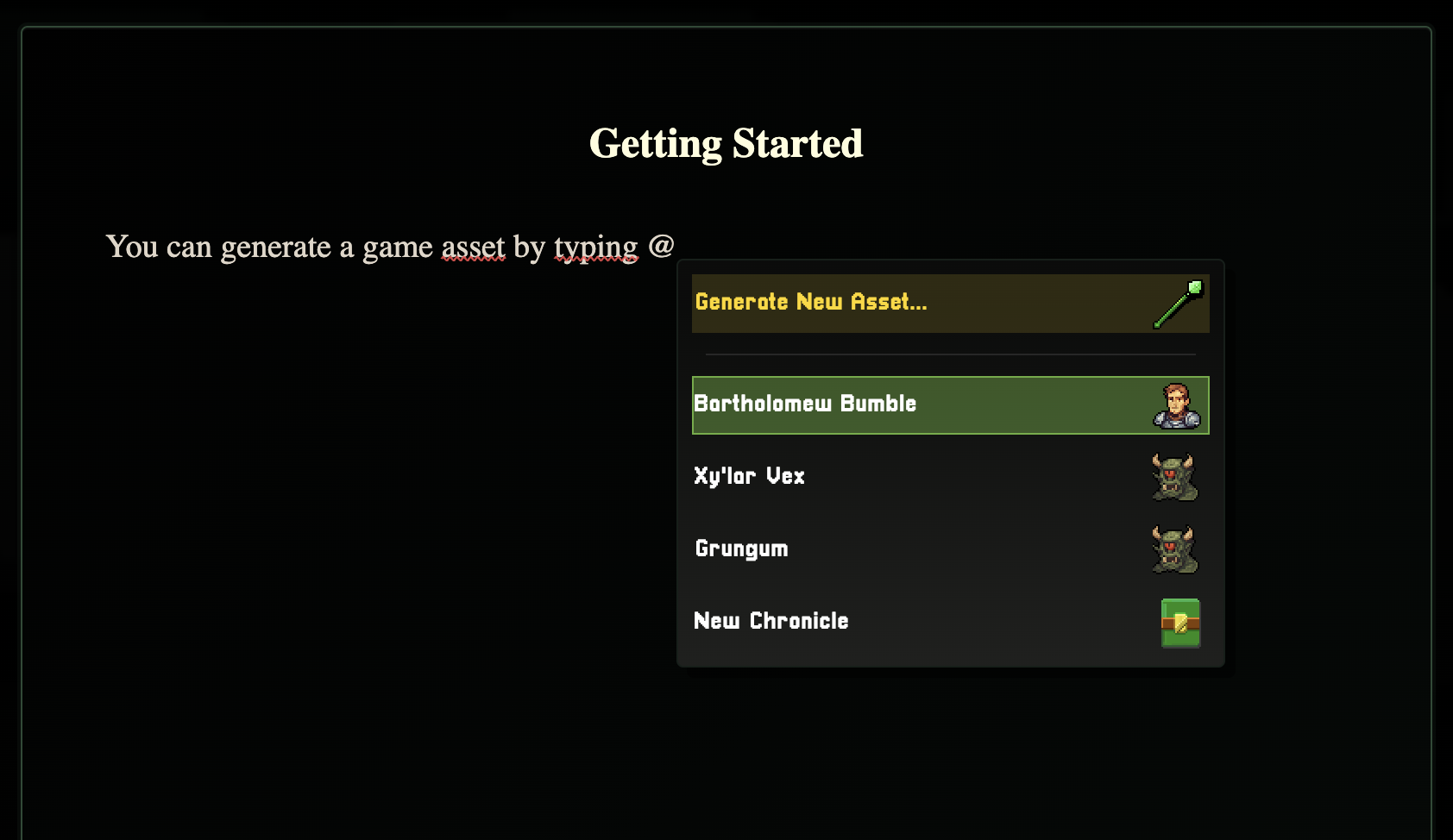 Then simply select the Game Asset that you want to generate from the modal options.