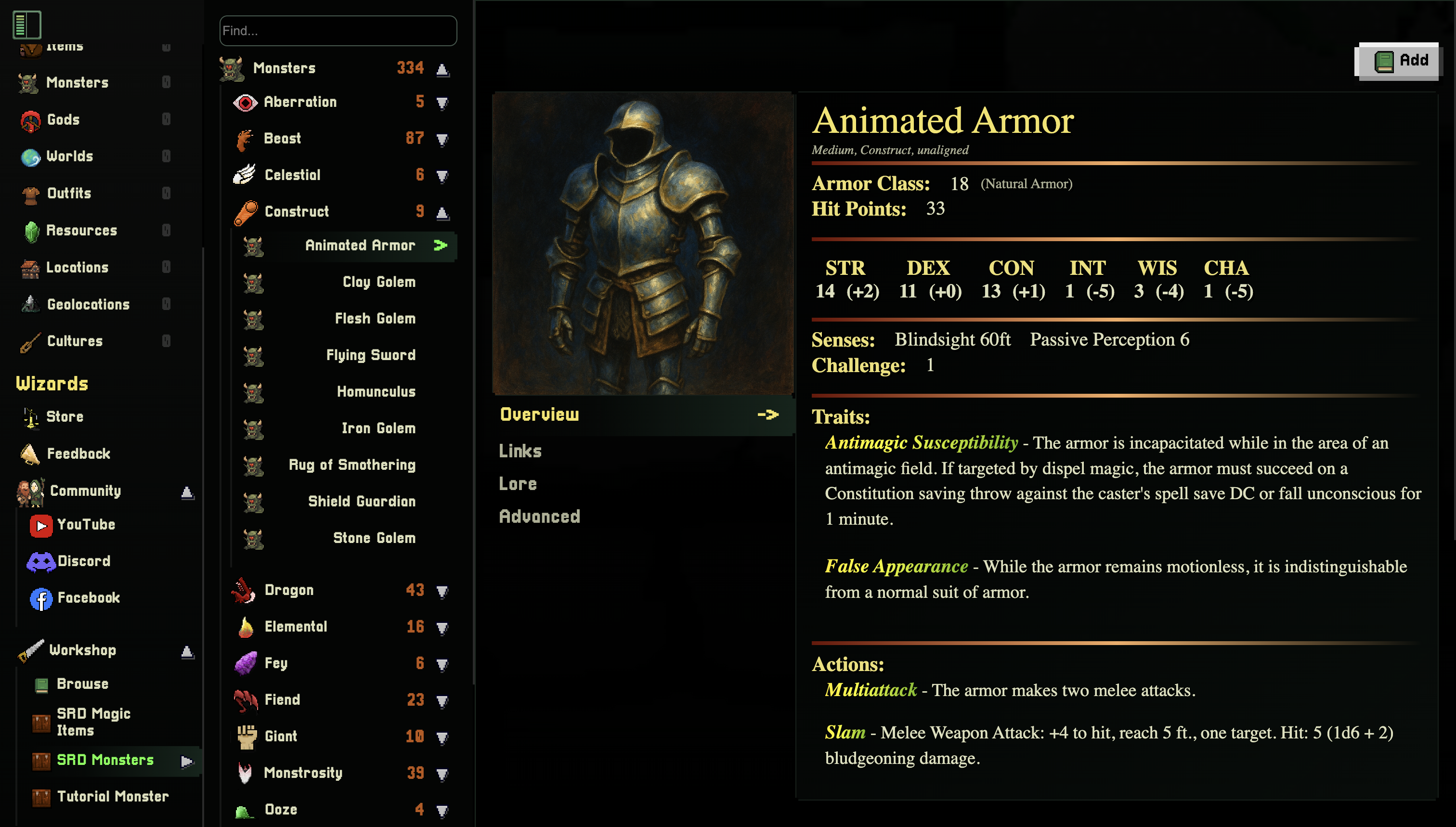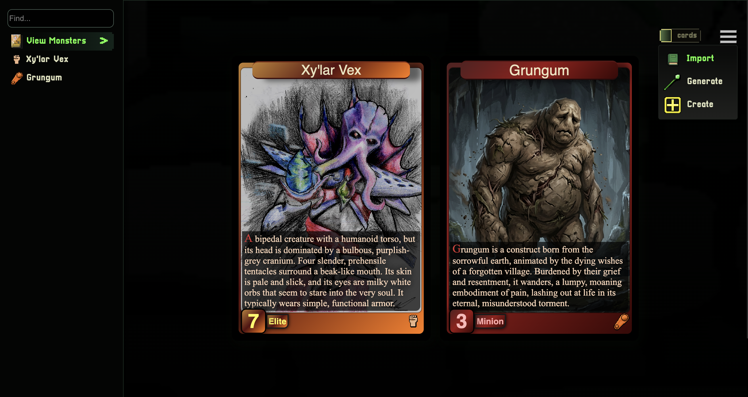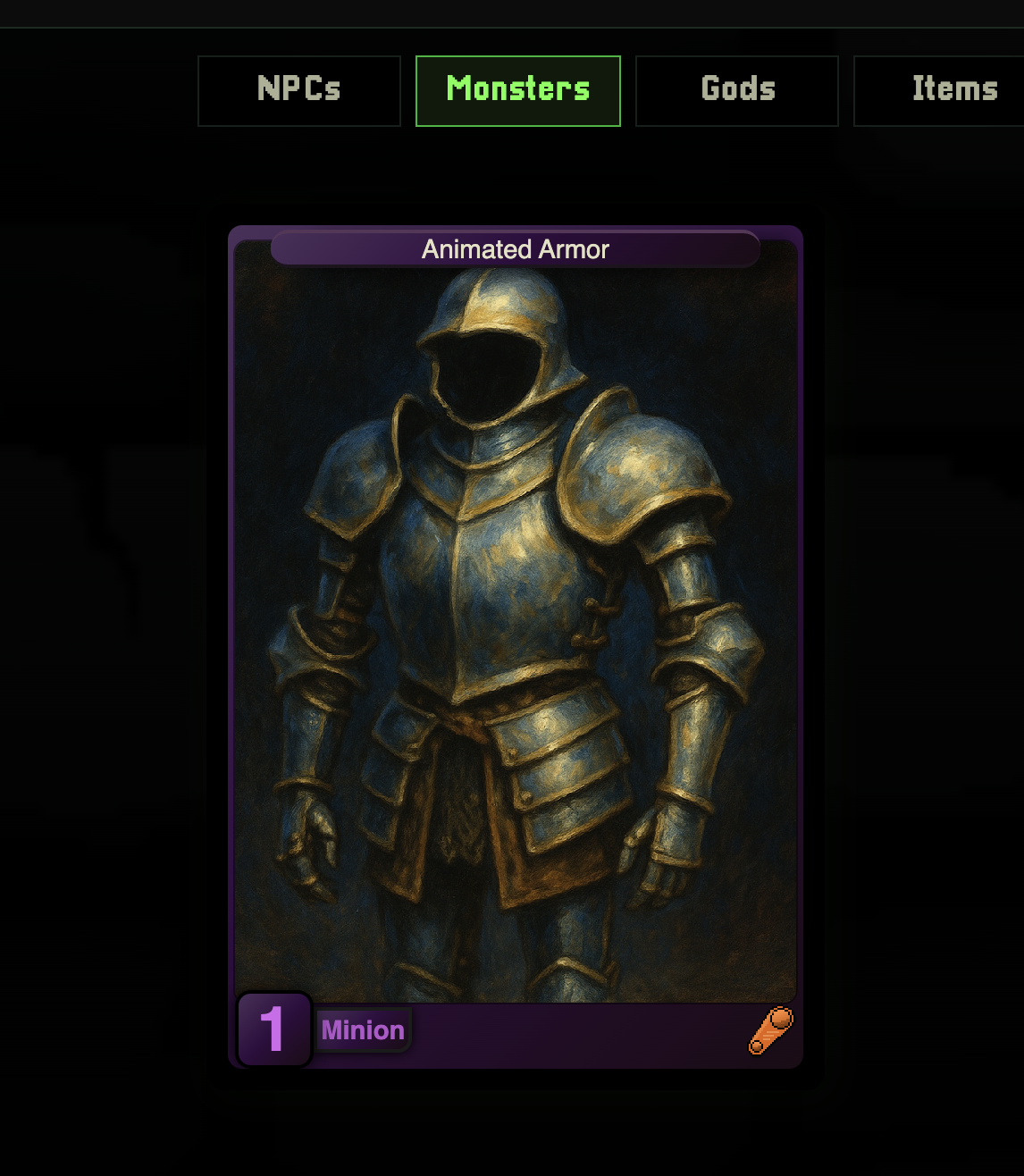 • Monsters — Creatures with stats, lore, and combat abilities